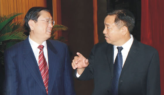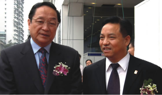 Wang Qishan, Member of the Standing Committee of the Political Bureau of CPC Central Committee; Secretary of the Central Commission for Discipline Inspection, together with Zheng Yuanbao, Chairman of People Electric Appliance Group.